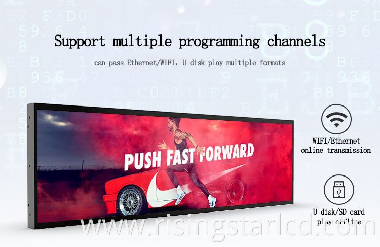 Ultra Wide stretched Bar LCD advertising display/ads player LCD commercial Ultra stretched bar Lcd Display