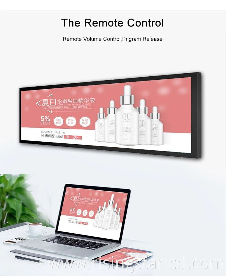 Hot new Wide stretched Bar Lcd Display/ads player LCD commercial stretched bar lcd display